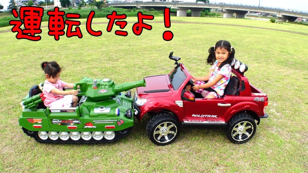 子供用の電動乗用ラジコンのフォードレンジャーと戦車を広場でのびのび運転してきました♪
