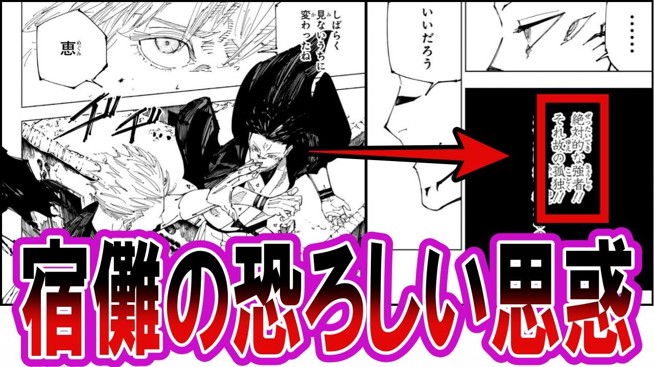 誰かを失って強くなる愛を知らないから、悠仁を嘲笑ったり乙骨先輩の愛し愛されは邪道で、悟を潰せば悟を愛してる人間が絶望して自分は更に強くなるって思ってそうだけど、多分失って強くなる愛に、宿儺は足元掬われる展開があるのかも?