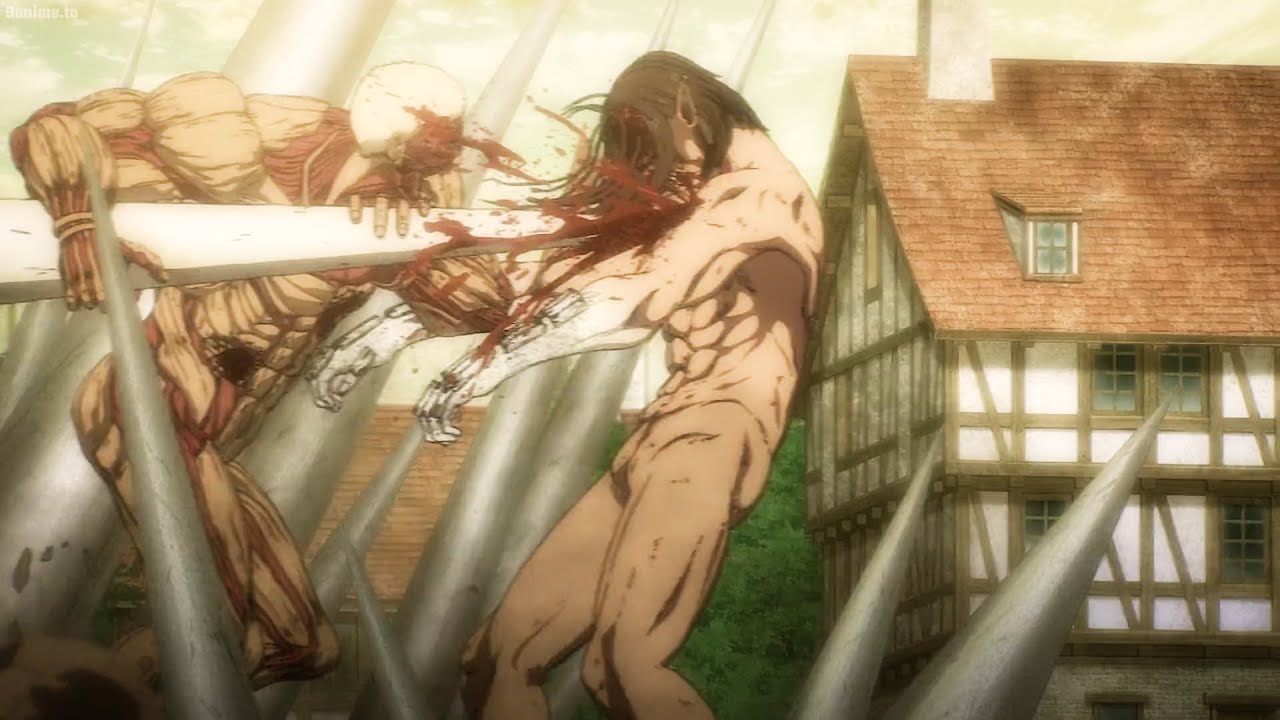Titan Reiner’s rage with 100% full power pierced Titan Eren