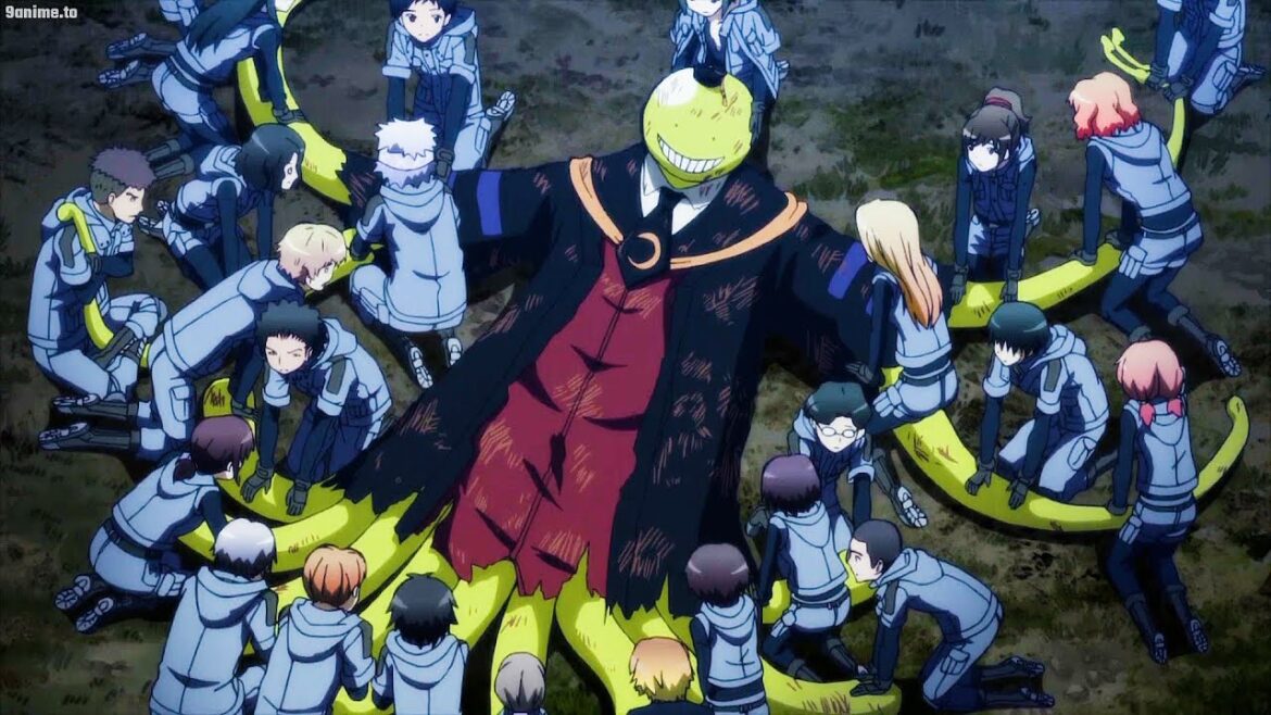 生徒が目の前で死亡した後、殺せんせーは超サイヤ人になり、かめはめ波で敵を破壊します | Korosensei turns into super saiyan after his student die