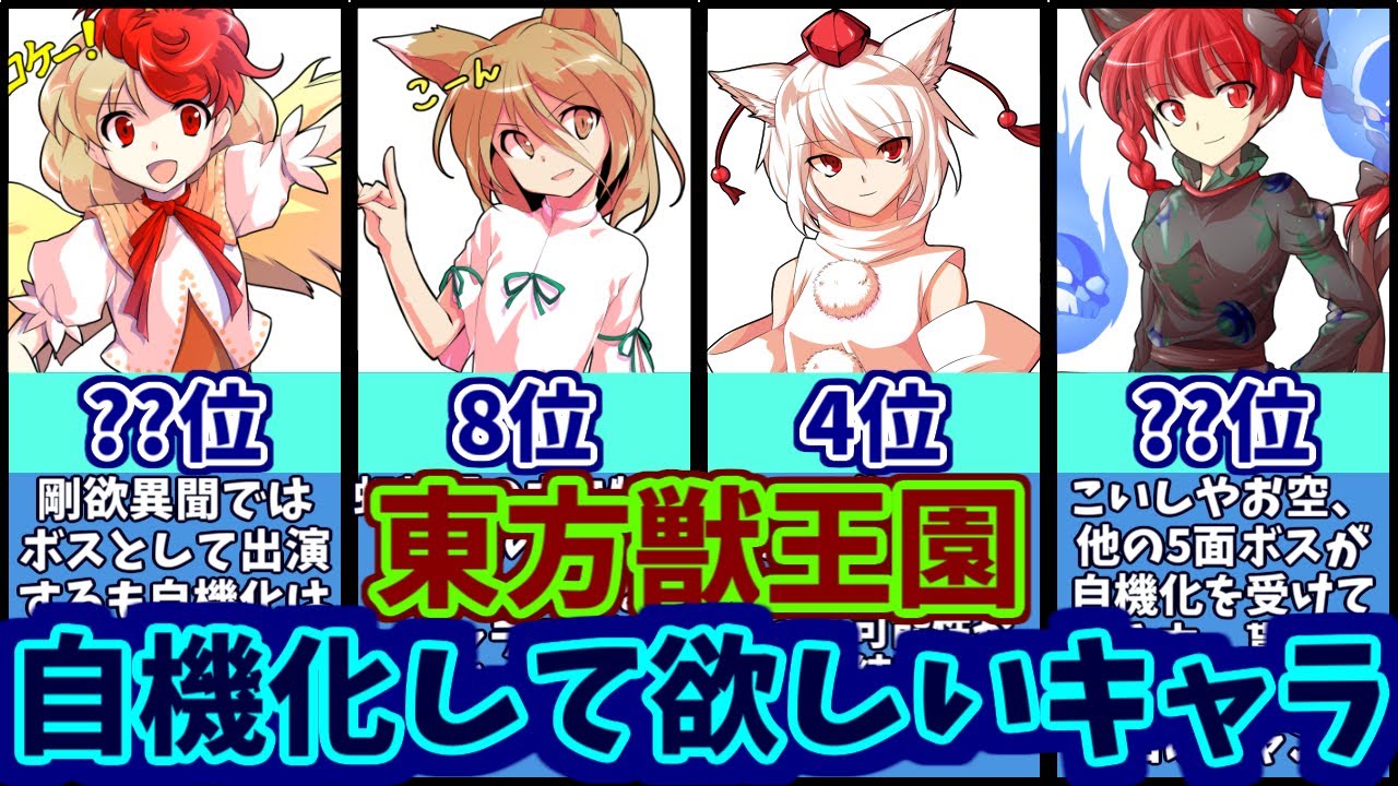 今回は、Twitterにて、東方新作「東方獣王園」で自機化してほしいキャラの意見を集め、ランキングにしてみました。