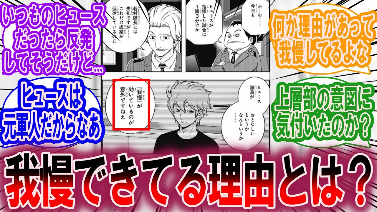 ワールドトリガーという日本の漫画を題材にしてその漫画に対する読者の反応を、掲示板やSNSから引用し、投稿者の自身の感想をまとめて解説、考察しながら紹介すること。