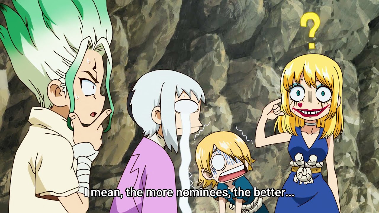 ドクターストーン 3期 – コハクのメイクは醜い女悪魔のように見え、千空とクロムを笑わせてパンツに小便を漏らす