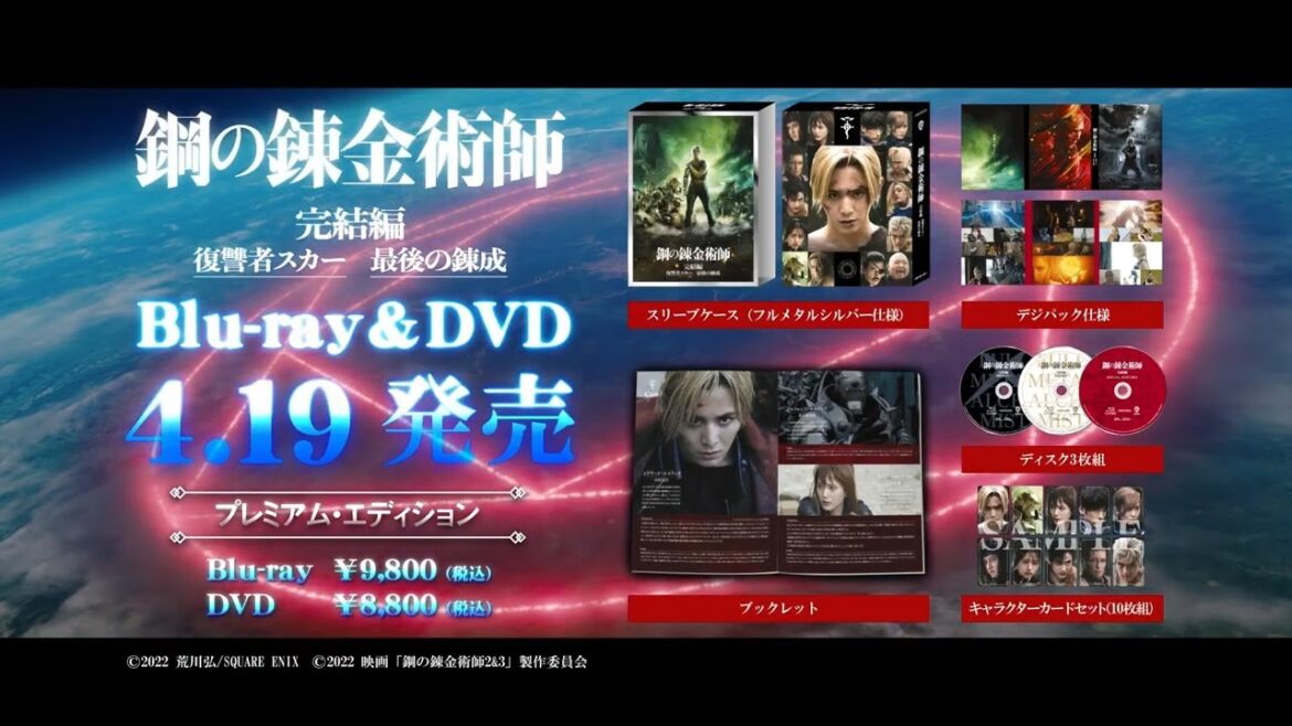 完結編二部作を収録したプレミアム・エディション(完全生産限定版)は、大ボリュームのメイキング&インタビュー「メイキング・オブ 鋼の錬金術師」、イベント映像集を収録した特典ディスク、ブックレット、10枚組のキャラクターカードセットを封入!
