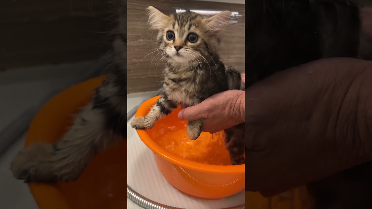 ラテとセリィが我が家に来てはじめてお風呂に入れた時の様子です。