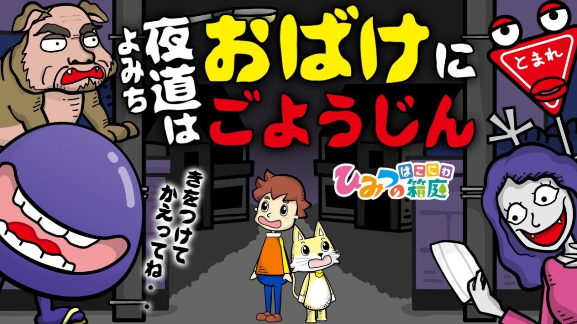 『子供向け おばけ・妖怪アニメ』口裂け女、人面犬、標識おばけ、べとべとさん。暗い夜道はおばけが出て来るから早く帰ろう。