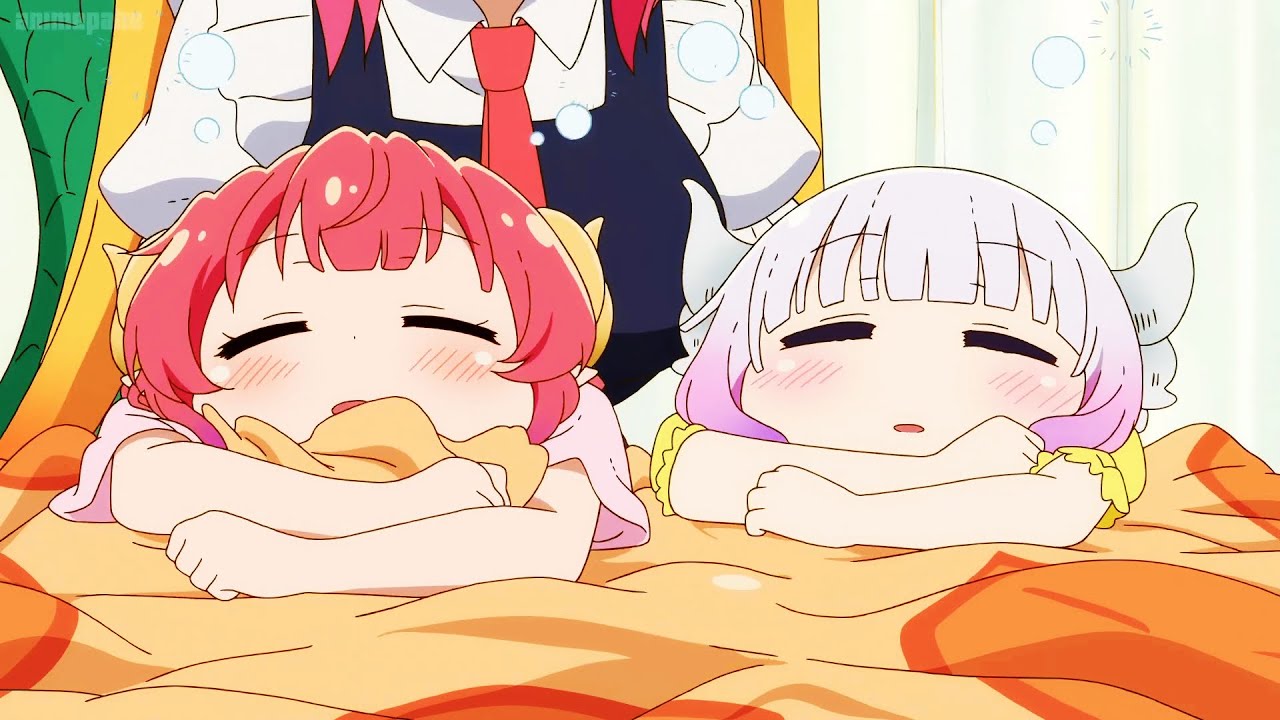 小林さんちのメイドラゴンs 7期 Tohiru taking care of cute Kanna while sleeping in bed//Kobayashi’s dragon maid s