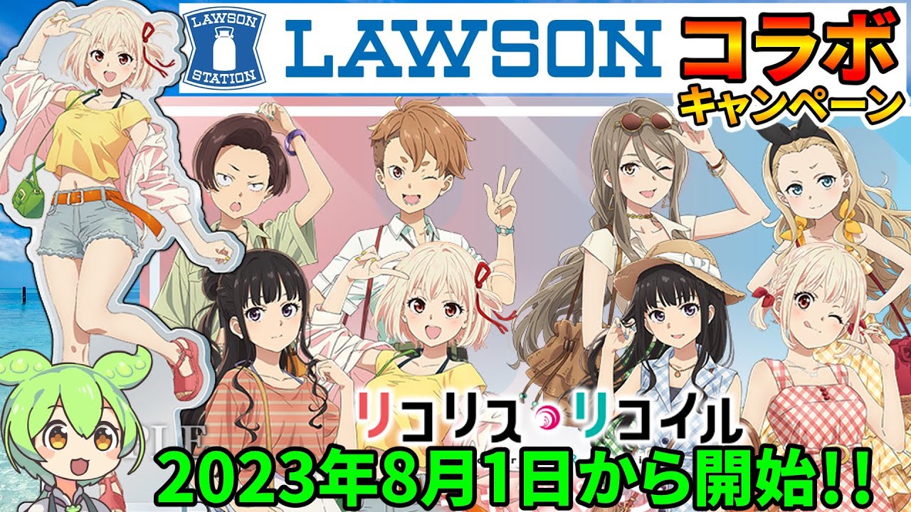『リコリス・リコイル』とコンビニのローソンがコラボキャンペーンを2023年8月1日火曜日から開始します。この件について、ずんだもんと四国めたんが紹介していきます。