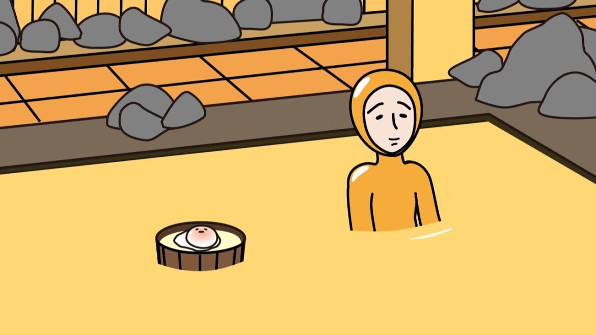 0:35 温泉に温玉がぷかぷか浮いてて困る😭♥♥迷惑♥
