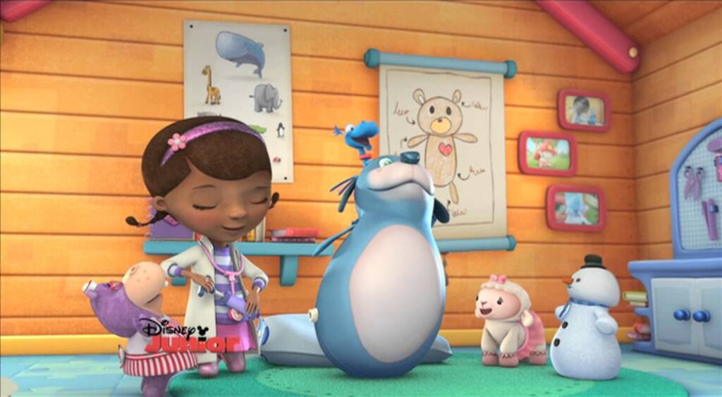 Doc McStuffins is a cheerful and kind seven-year-old girl who dreams of being a doctor like her mum when she grows up. She just loves taking care of toys that are injured or sick and with the help of her amazing, magical stethoscope she can talk to her toy friends to find out what’s wrong and help them ‘feel better!