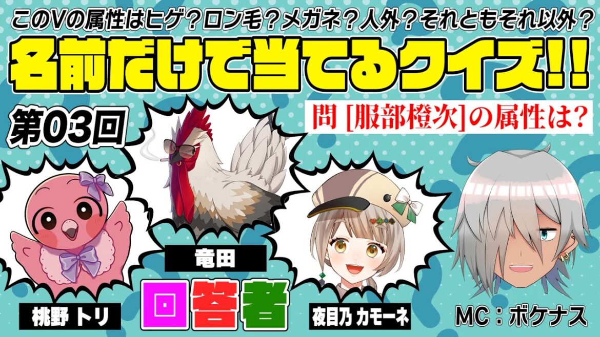 「ヒゲ」「ロン毛(ロングヘア)」「メガネ」「人外」なのかを当てるクイズ企画です!