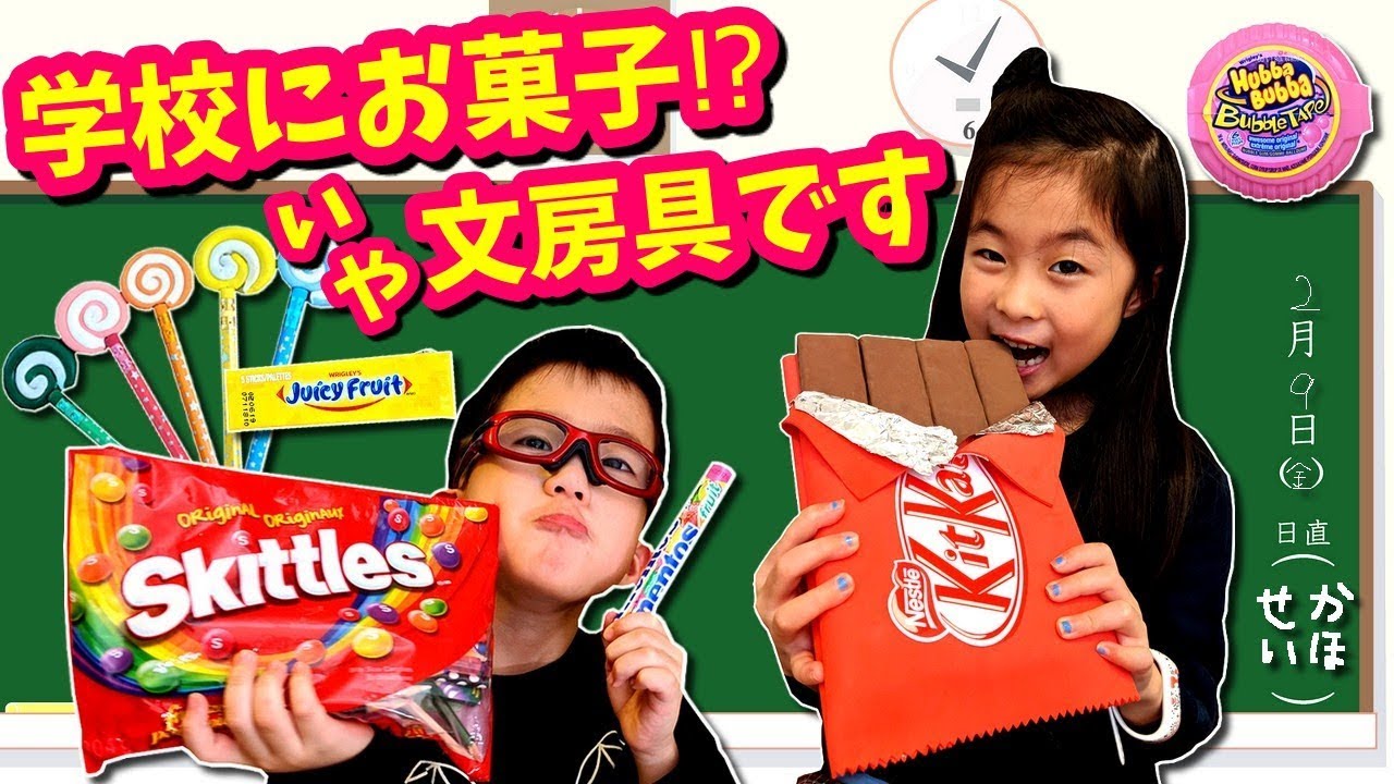 これ、お菓子に見えるけど、お菓子ではありません。お菓子文房具作ってみました~。本物と入れかえて、学校にお菓子!パパ先生にばれませんように!チャンネル登録おねがいします。ぜひ、かほせいチャンネルをサポートしてね💗