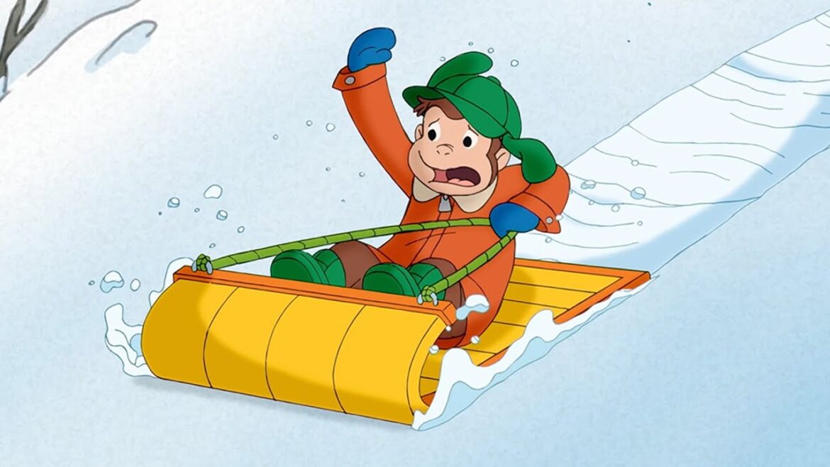 ジョージは雪の日が大好き。ビルとアイスホッケーをするのが待ちきれません。