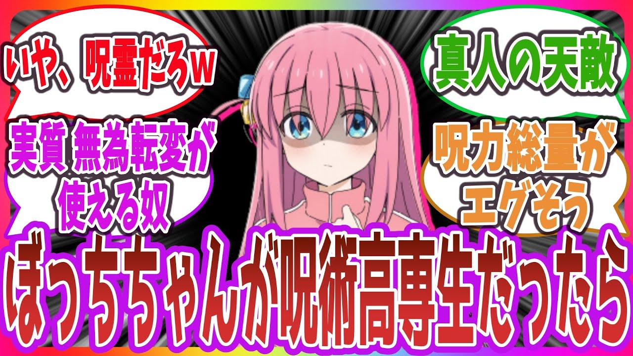 この動画は、原作「ぼっち・ざ・ろっく!」の主人公、後藤ひとりが「呪術廻戦」の世界にいたら?に対する反応と、投稿者の感想を紹介する動画です。