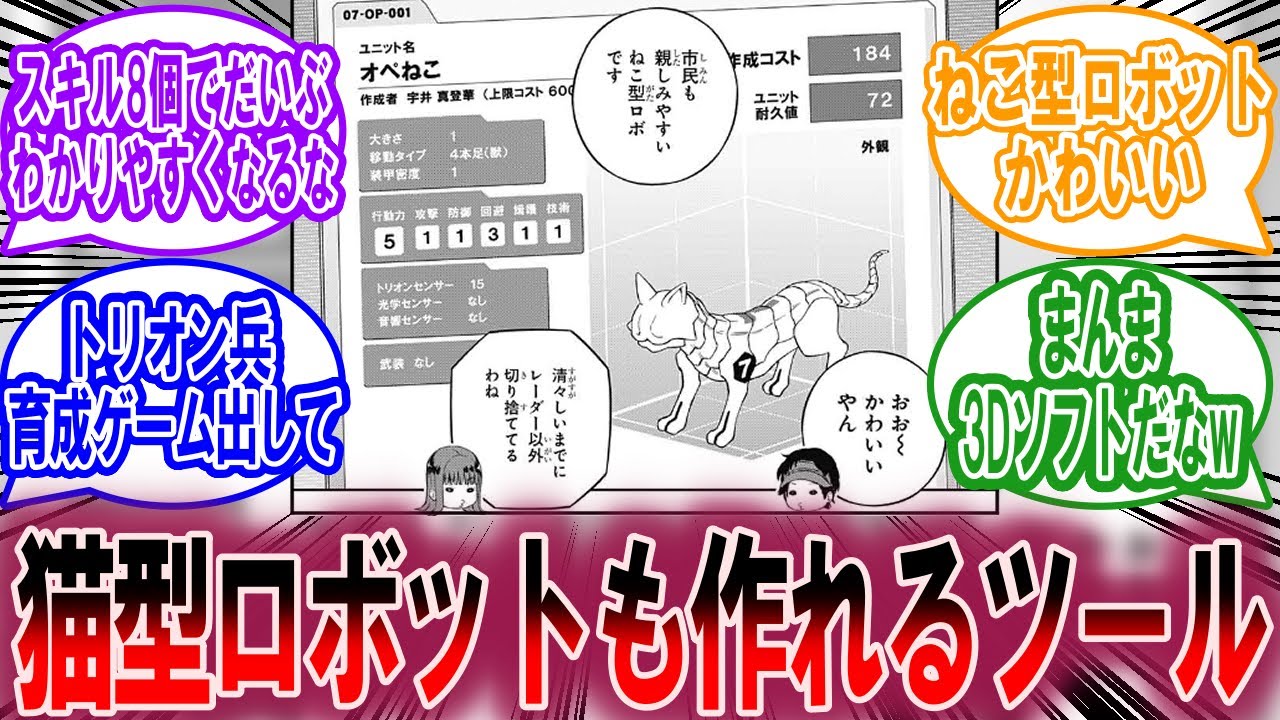 ・この動画内に登場する内容を解説、また第三者の反応を紹介することでワールドトリガーをより詳しく知り楽しめるようにしている。