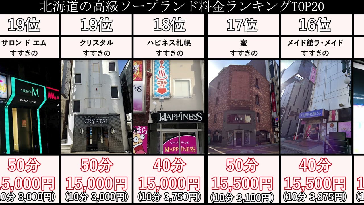 北海道の価格が高いソープランド料金ランキングベスト20です。