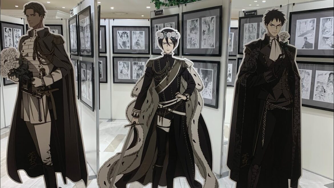 「薔薇王の葬列」「王妃と薔薇の騎士」完結記念展 Requiem of the Rose King フォトスポット キャラクターパネル(リチャード・バッキンガム・ケイツビー) 複製原画 グッズ展示