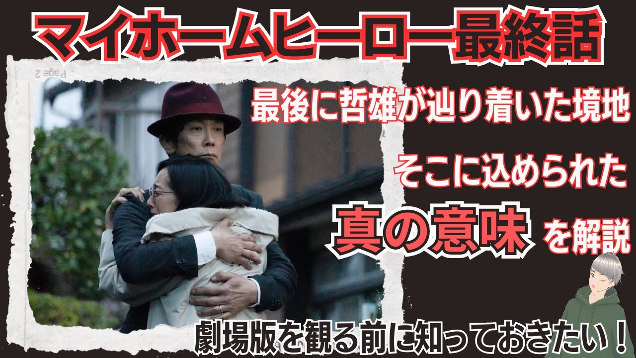 2023年秋のドラマ「マイホームヒーロー」最終話のストーリーを振り返りと感想を配信しています。哲雄(佐々木蔵之介)と義辰(吉田栄作)の因縁がついに決着。哲雄が最後に辿り着いた境地、そこには恭一(高橋恭平)のあの言葉を思い出させる深い意味があった。そして話は7年後へ繋がる。