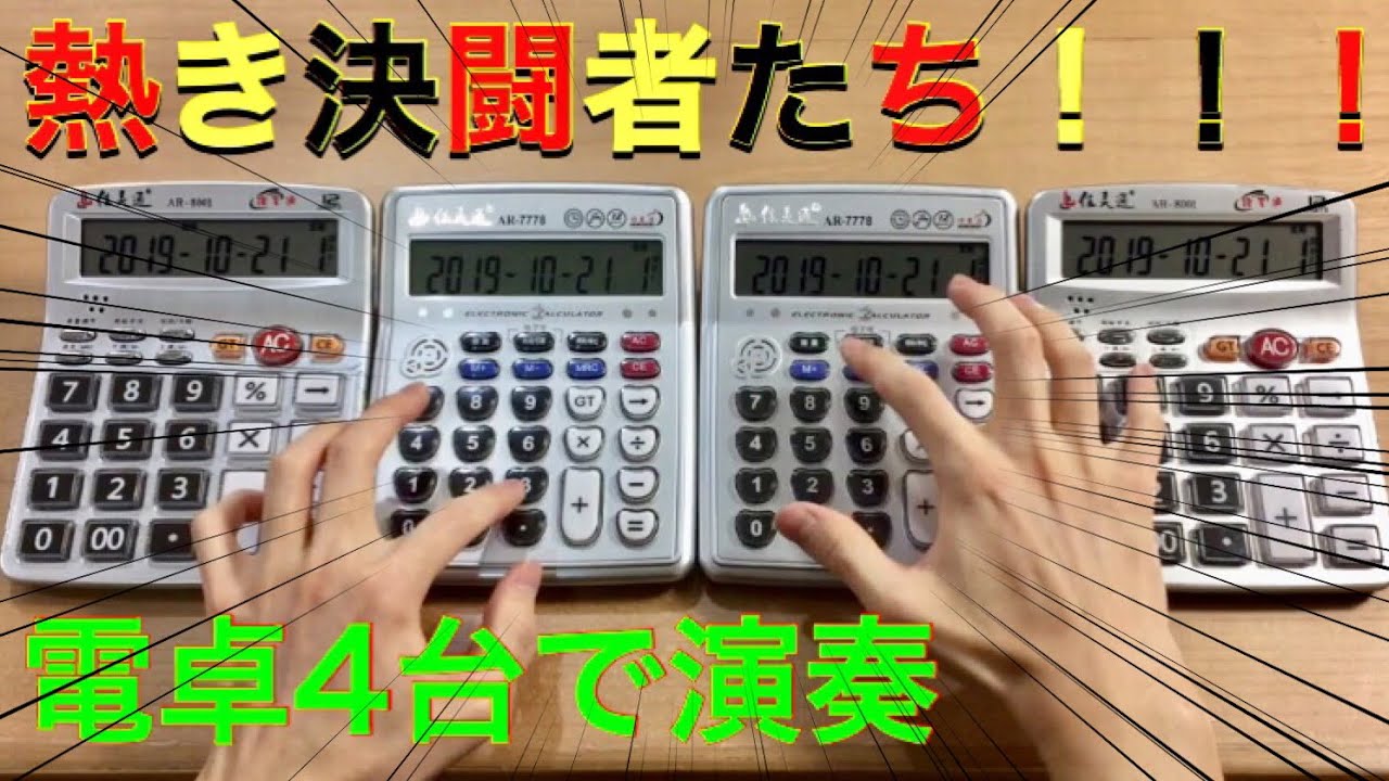 電卓4台で遊戯王デュエルモンスターズの「熱き決闘者たち」を弾いてみました!