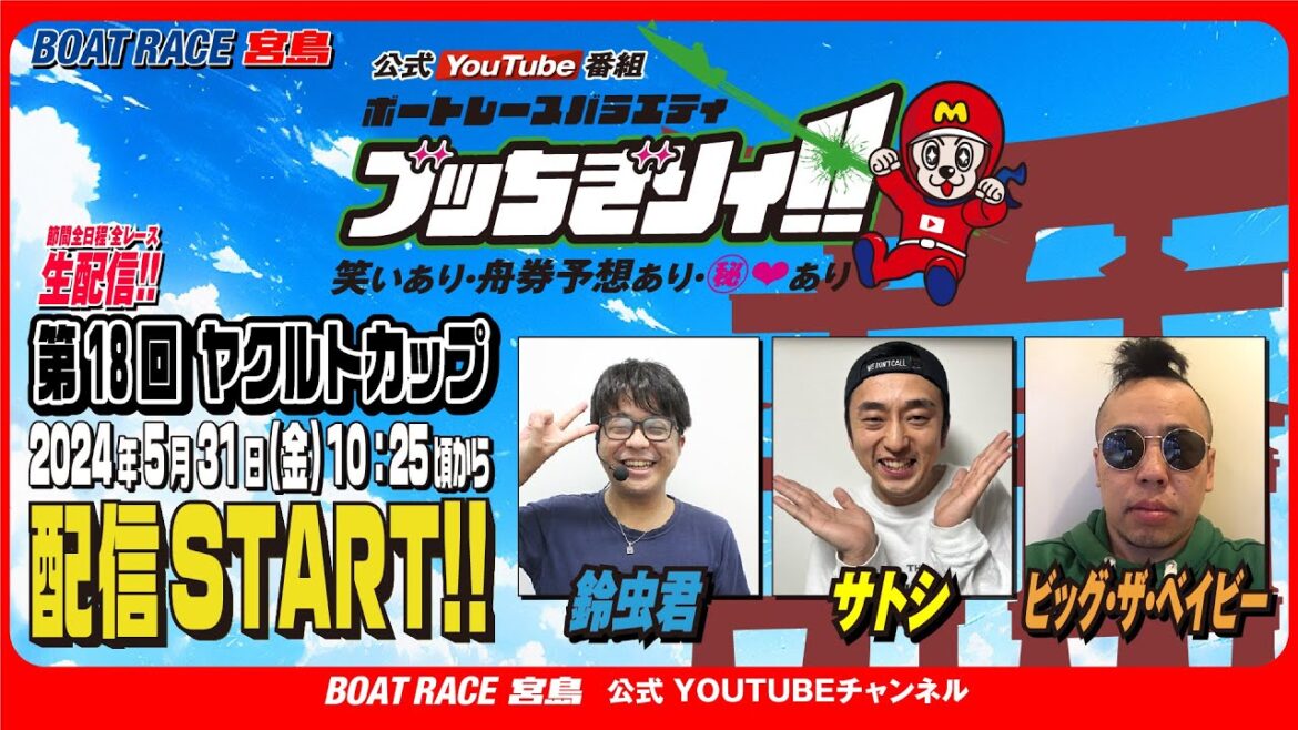 【ボートレース宮島 公式YouTube番組】 ボートレースバラエティ “ブッちぎりィ!!”【鈴虫君&サトシ&ビッグ・ザ・ベイビー】