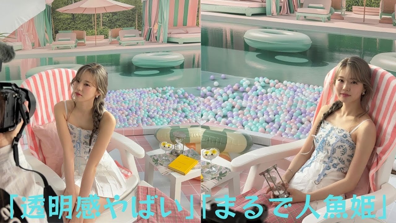 The cute off-shot shows her in the middle of a photo shoot in a set of pastel colors such as pink, pale green, and white.