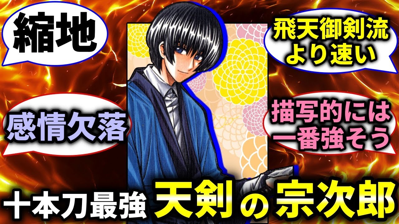 DBの悟飯も舐めプがなかったら、もっと早く戦闘が終っていた動画が多いですが、この動画での、宗次郎も、手加減せずに、最初から全力をだせば、比古清十郎以外は、最強だと思います。ただ、剣心と同じく、筋力がないから、相手に攻撃を読まれたり、反撃の手段が厳しいと思います。宇水は、剣心と同じく?心を読む戦法はあるけど、身体能力が追い付いてないと、防御の隙を狙われる恐れが?