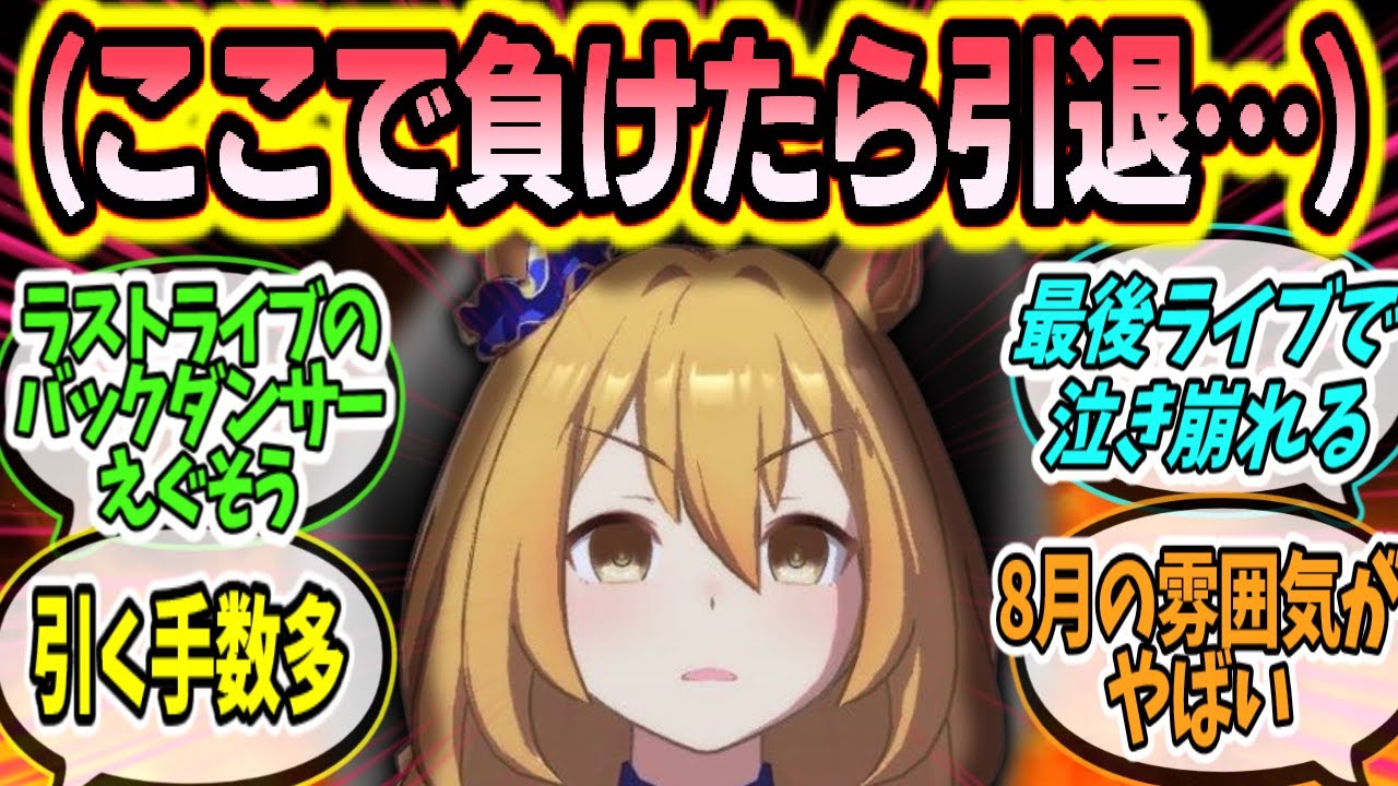 最後の未勝利戦でバックダンサーやらせるとかあまりにも人の心無いし流石にソロライブにしてくれてる…はず