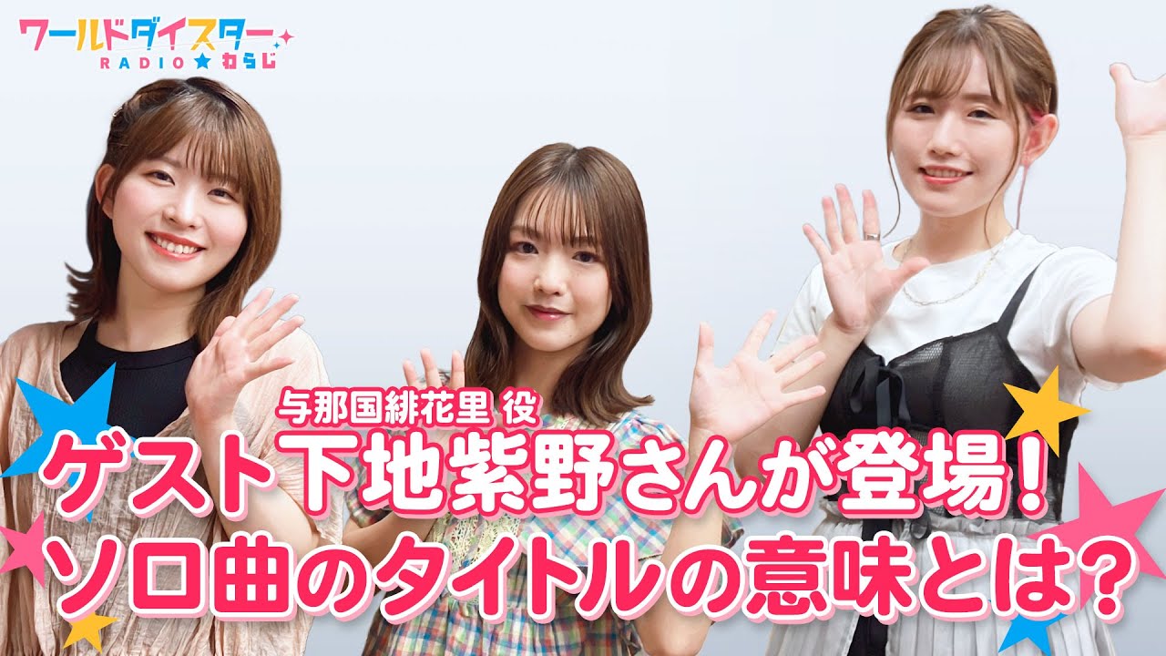 今週は、銀河座の与那国緋花里 役の下地紫野さんがゲストとして登場!長谷川育美さん(静香 役)は改めて呼び名を確認!?緋花里のキャラクターや、下地さんとの共通点を語りました!そして、下地さんによる沖縄の方言でのソロ曲紹介は必聴です!