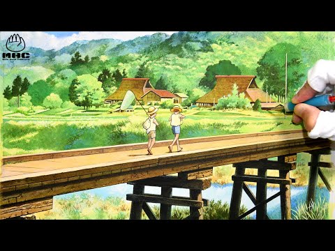 ジブリアニメ「平成狸合戦ぽんぽこ」より、日本の原風景を模写してみました。
