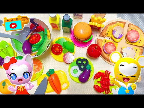 【おもちゃ】おままごとで野菜の名前を覚えよう!★ピザとサラダを料理★トマト、たまねぎ、にんじん、きのこ★子ども向け知育動画