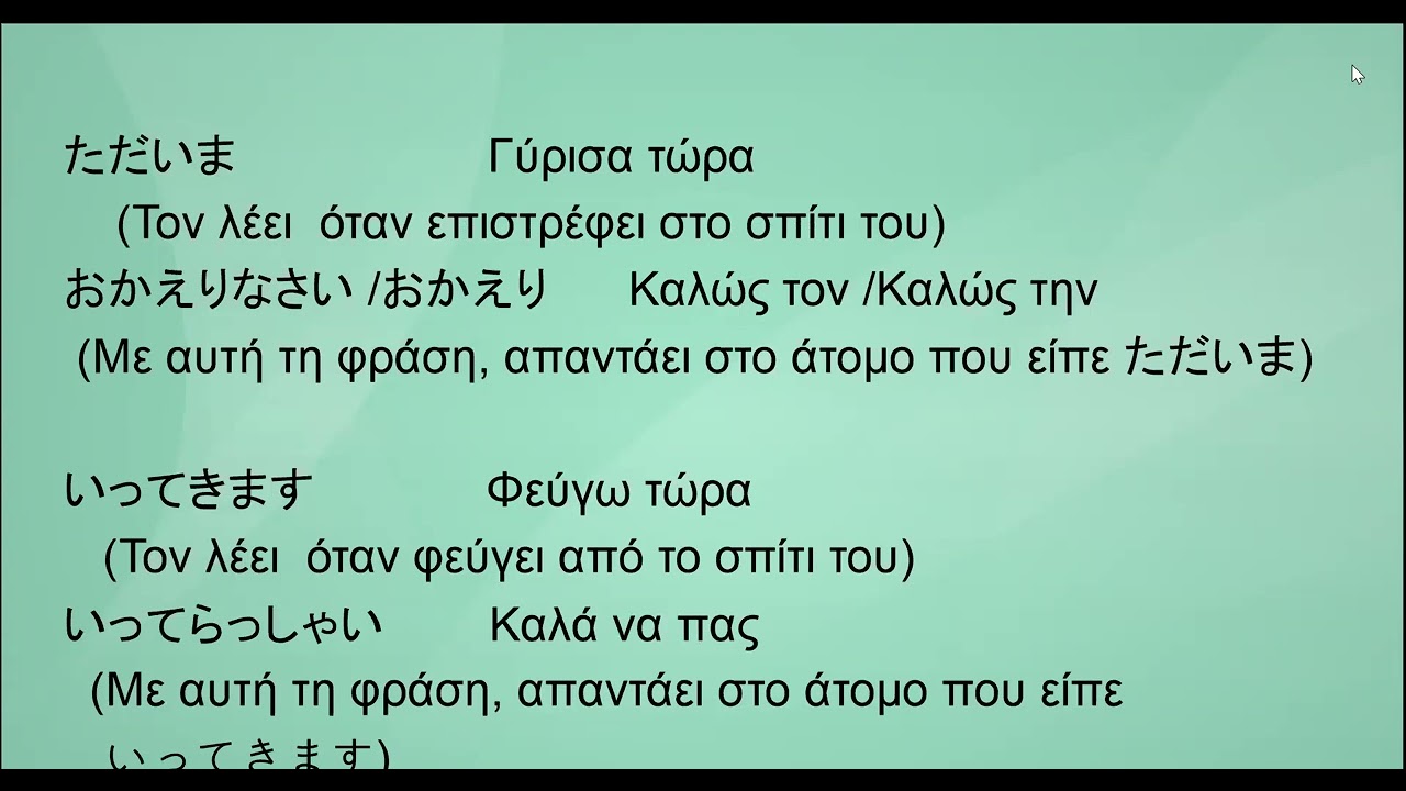 これらのビデオは日本語を勉強しているギリシャ語話者向けに作成されていますが、現代ギリシャ語学習にも役立つと思います。単語を聞き流して、新出単語の学習や既習内容の確認にご活用ください。