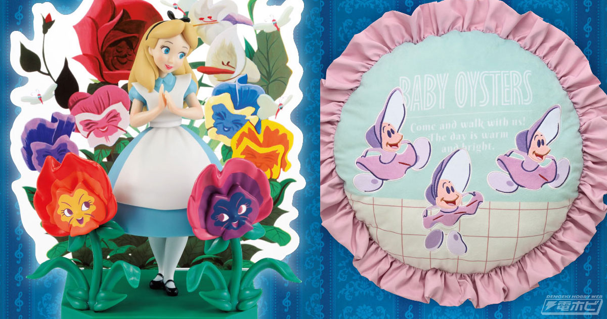 A賞は「〈アリス〉 シーンフィギュア」。映画『ふしぎの国のアリス』より、名曲「All in the Golden Afternoon」のシーンを立体化しています。ヤングオイスターデザインのクッション、映画『ピーター・パン』より、ネバーランドに飛び立つシーンで流れる名曲「You Can Fly!」のワンシーンを表現したアートディッシュなども登場です。このほか、ビジュアルタオルやミニフィギュアチャーム、ハンカチタオルなども登場。そしてラストワン賞は、映画『ふしぎの国のアリス』より、名曲「All in the Golden Afternoon」のシーンをデザインしたティーポットです。