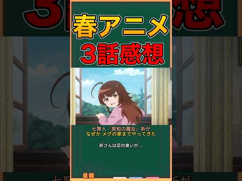 ある魔女が死ぬまで3話は感想です。はい 。七剣人エチの魔女祈りがなぜかメグの家 までやってきた。ファウストはある調査で 家を留守にしており、帰りが遅くなるため 様子を見てくるよう頼まれたのだという。 メぐの嫁名が短いことを祈りに気づかれて しまう。ファウストから嬉し涙を集める ように言われてから数週間が経った。集め きれないと悟っためぐは生き残ることより も死ぬことを受け入れようとしていた。死 を覚悟したメぐに祈りは魔法を使って 極大日の竜星軍を見せてくれた。願いなよ メぐ。あんたが1番叶えたいこと、 生き抜くこと、死なないこと、世界に出る 魔女になること。あんたが願うべきはそれ じゃないの。最後にラピスの町で行われる 遺会祭りが1週間後に迫っていた。遺会の 門の買問はファーストが行うはずだったが 、急遽できなくなったため、七剣人祝福の 魔女ソフィーヘイターが大薬として手伝っ てくれることになった。Yeah.