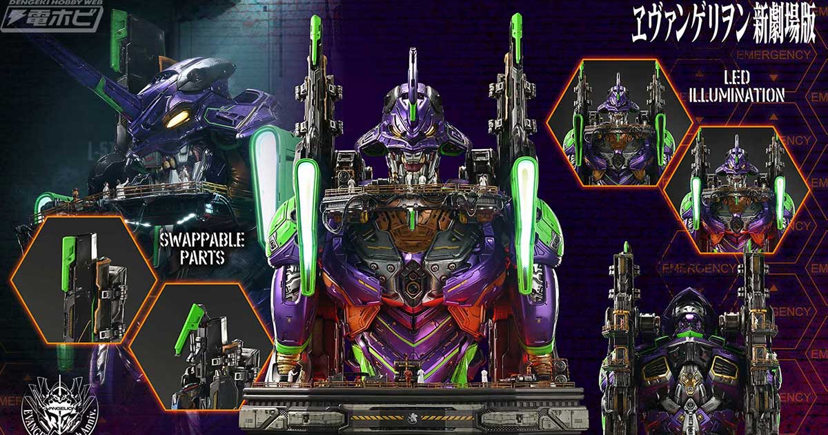 『ヱヴァンゲリヲン新劇場版』初号機がプライム1スタジオの「ライフサイズバスト」に登場!スケールアップしたことで各部に濃厚な情報量が宿る!  電撃ホビーウェブ『ヱヴァンゲリヲン新劇場版』全高86cm、価格56万円の初号機の胸像が登場。発進前の静寂と緊張感を細密に再現。  ファミ通「ヱヴァンゲリヲン新劇場版」よりエヴァンゲリオン初号機が全高86cmの胸像で立体化(HOBBY Watch)  Yahoo!ニュース『ヱヴァンゲリヲン新劇場版』より、初号機を全高86cmのバスト(胸像)として立体化(2025年5月8日)  BIGLOBEニュース「ヱヴァンゲリヲン新劇場版」よりエヴァンゲリオン初号機が全高86cmの胸像で立体化価格はおよそ56万円 | チバテレ+プラス  千葉テレビ放送株式会社