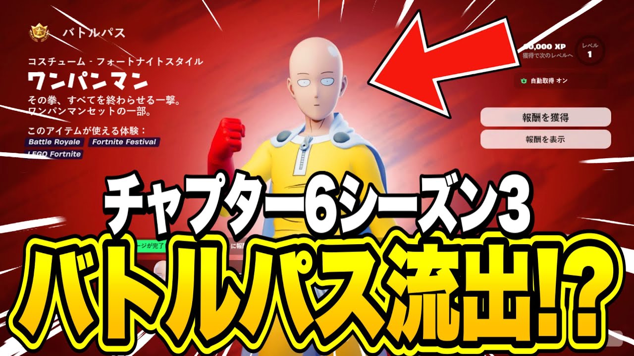 新シーズンが楽しみな人はこの動画に高 評価をポチ。もう6月ってやばくね?今年 あと半分しかないじゃんって思った人は チャンネル登録で教えてね。どうも6月3 日に誕生日を迎えるお祭り君です。6月3 日だけは本当にクレクレキッズになります 。そんなくだらない話は置いといて皆さん マジで今緊急で動画撮ってるんですけど これを見てください。シーズン3のコラボ が確定しました。コラボ内容はスーパー マン。そしてそのミシックワンパンマンの 埼玉。この2作品が確定でやってきます。 なんで今お祭り君が緊急でカメラ回してる かと言うと確定なんですよ。これねマジで やばいの。フォートナイトでコラボの リーク情報っていうのは結構出るじゃん。 それで言うと鬼滅の刃、ワンピース龍が 如とこれいつ来るんですか?て感じになっ てる。早やふやなコラボ情報なんだけど、 今日出たこちらの速報最新情報によると スーパーマンとワンパンマンのコラボが マジで確定しました。とにかく確定したん だよ。いつもは確定はしてないの。でも 今回は確定しました。だから次のシーズン 、チャプター6シーズン3で絶対にこの コラボが来ます。次のシーズン、新 シーズンがどうなるのか。コラボ情報だけ じゃなくて新シーズンのバトルパスの内容 までガチでリーク流出されています。今日 の動画ではそれについて全てまとめて いこうと思っているので新シーズンが 楽しみな人、チャプター6シーズン3が どうなるのか気になってる人は今日の動画 絶対に最後まで見てってください。はい、 ということで早速本題に入っていこうと 思うんですけど、まずはこちらをご覧 ください。シーズン3のコラボが確定 スーパーマンプラス神話的能力。これは ミシックアビリティです。埼玉かこワン パンマン。来シーズンは他にどんなコラボ が見たいですか?ということでまさかの シーズン3でのコラボが確定してしまい ました。スーパーマンとワンパンマンの 埼玉がやってきます。お祭り君のちょっと 前の動画で新シーズンのバトルパスが流出 したぞっていう動画を出したんだけど、 その動画で紹介したんだけど、チャプター 6シーズン3っていうのはスーパー ヒーローがテーマになったシーズンになる んじゃないか。これがほぼ確定だよって いう話をしたんだけど、今日のこの速報に より本当に確定しました。はい。これは もう確定です。スーパーマンとワンパン マンが来るから確定だよっていうあっさい 理由ではありません。これお祭り君マジで 気づいちゃったんだけど。それがこちら。 チャプター6シーズン3及びOGシーズン はどちらも同じ日6月8日に始まります。 これは珍しいことではありませんが、 どちらもスーパーヒーローがテーマになっ ています。これなんですよ。この動画を見 てる人でチャプター1シーズン4を知ら ない人がいると思うから軽く説明していく んだけど、こちらのチャプター1シーズン 4オメガとかゾイとかが出てたシーズンな んだけど、このシーズンのコンセプトは スーパーヒーローなんですよ。また ヒーローの敵であるビランかこ悪役も存在 し、各チームの秘密基地なども登場という ことでオメガがビランでカーバイドが ヒーロー側。実はこのシーズンスーパー ヒーローがテーマになっています。そして 次にやってくるOGシーズンっていうのは チャプター1のシーズン4なんですよ。 これ偶然とは思えないよね。さすがに狙っ てきてるよね。つまり何が言いたいかって 言うと、チャプター6シーズン3、次の バトロアの新シーズン、そしてOGの新 シーズンが同じ日にやってきます。両方 ともスーパーヒーローがテーマになって いるんですよ。とことは前の動画でも紹介 したように新シーズンのバトルパス、 チャプター6シーズン3のバトルパスって いうのは確実にヒーローがテーマになって くる。そして今日出た最新情報のスーパー マンとワンパンマンのコラボ。この2作品 両方ともスーパーヒーローがテーマになっ たアニメと映画。これやばくないですかと 。さすがに。そしてこちらチャプター6 シーズン3はスーパーヒーローがテーマに なるそうです。これは前々からリークされ てました。だけど確定はしてなかったんだ よ。最近の調査では18個のスーパー ヒーロースキンがリークされましたが、 これはスーパーマンが次のシーズンで ミシックを獲得する予定であり、同じ日に OGのシーズン4がリリースされるという 事実と完全一致します。これなんですよ。 お祭り君もこの人も気づいてますよね。1 つ向こう側の世界に行ってますよね。 こんな感じでスーパーヒーローをテーマに したスキンが大量にコンセプトアートに あるリークされていると。左の方にいる カメレオンいるじゃないですか。この カメレオンのスキンは新シーズンのバトル パスのスキンになるってことはゲーム内の データから判明しています。1体だけは マジで確定してるんですよ。だから今日の 動画でみんなに1番伝