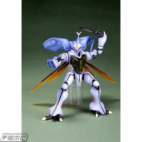 背部オーラ・コンバーターは、ハッチ開閉ギミックや推進装置などを再現。足の指部分の可動や裏面のディテールなど、精密に再現されています。クリヤーパーツ使用の開閉式・コックピットハッチをはじめ、シートやパイロットも再現。さらに頭部カバー内には、生体メカディテールをセット。また、脚部装甲は着脱可能。内部には、フレームや筋肉などのディテールを再現しています。