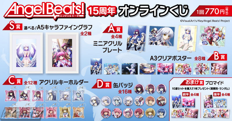 KADOKAWAが運営するオンラインくじサービス「くじ引き堂」に、TVアニメ『Angel Beats!』のオリジナル賞品が手に入る「Angel Beats!15周年オンラインくじ」が登場! 2025年7月2日(水)12時より販売開始です。