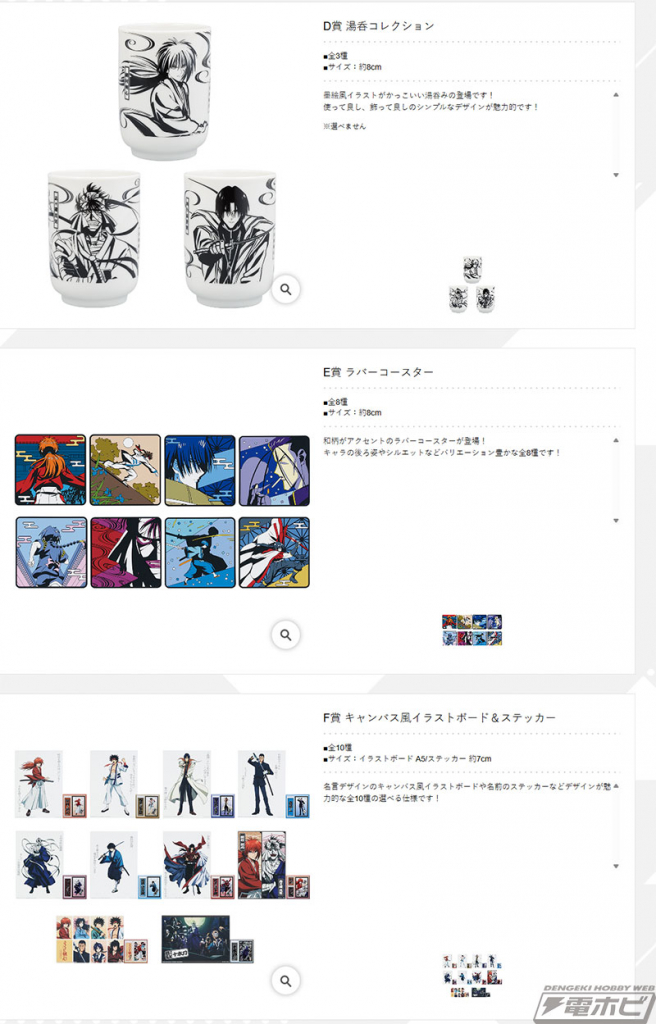 BANDAI SPIRITS ロト・イノベーション事業部の公式サイト「一番くじ倶楽部」にて、「一番くじ るろうに剣心 -明治剣客浪漫譚- 京都動乱」の全賞品ラインナップが公開されました。2025年7月18日(金)より順次発売予定です。