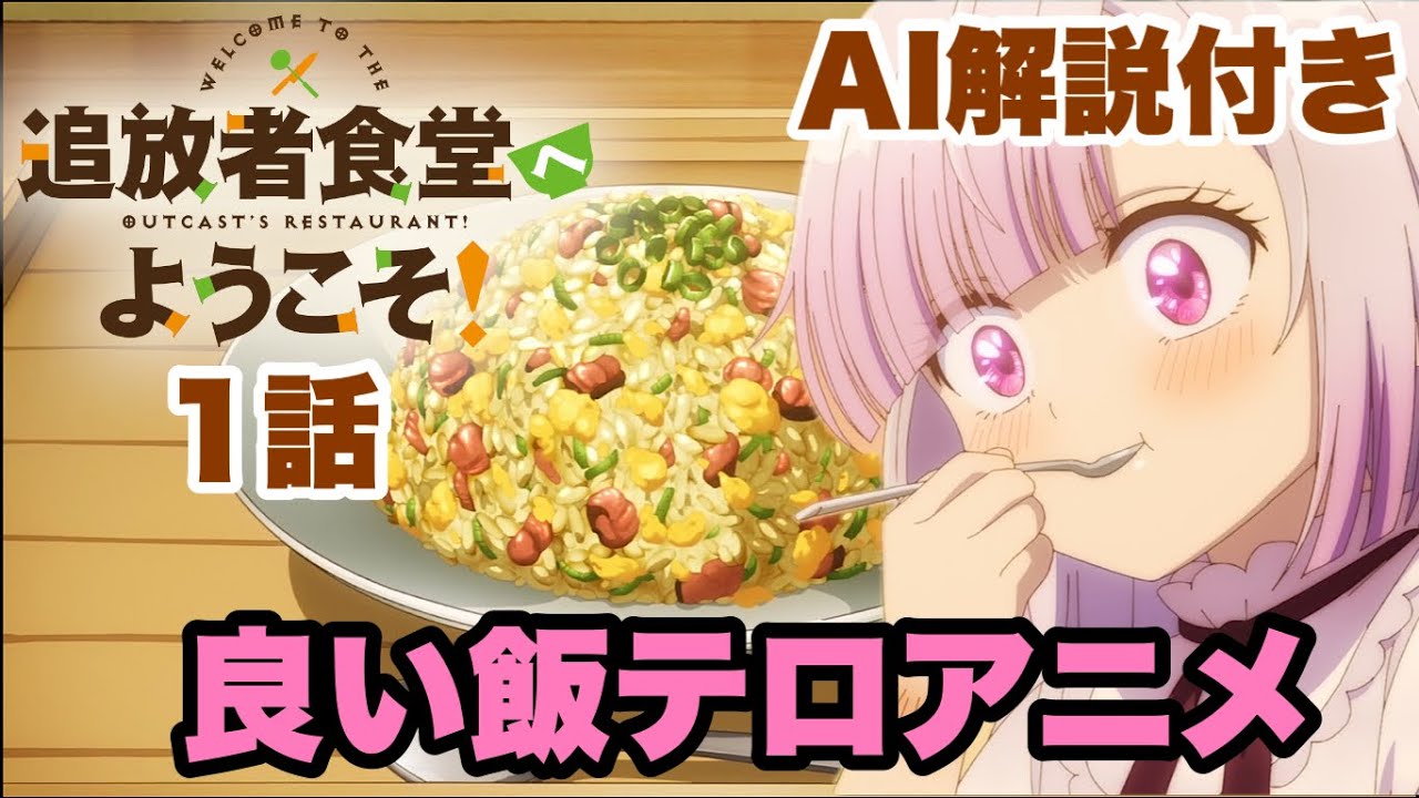 素晴らしいメシテロアニメが始まったよう な感じです。追放者食堂へようこそ。それ がこのアニメのタイトル。料理が美味し そうに見えるのはもちろんのこと。調理を している時の音がまた食欲をそります。 そして人ドラマとしても素晴らしかった。 お腹をすかした幼いヒロインに主人公が 最後に言うセリフがあるんですけど、それ が最高でした。このアニメのテーマを全て 語っているようで、それは本当に 素晴らしいテーマです。おそらく今後は そのテーマに沿って物語が語られるん でしょう。食事ができることがどんなに 幸せであるのかも実感できました。それが 美味しかったらなおのこと。世界一の冒険 者パーティーはドラゴンの討伐に失敗し ます。その後の会議で隊調は失敗はデニス の責任だというのでした。恐怖の小色を 放っていなければドラゴンが逃げず討伐が できていたのだと。デニスが小色を放った のはパーティーが全滅するのを避けたため です。隊長はデニスにパーティーからの 追放を言い渡します。は隊調と同じレベル 99でしたが、彼は料理人でもあり、隊調 はそれを気に食わなかったのです。オート を出るデニスをパーティーメンバーのKT が追いかけてきます。彼女は追放に納得 できないようです。彼女はデニスが入って から私たちは世界最強のパーティーと言わ れているのだと話しました。これからどう するのよと聞くとデニスは料理を作って 自分の店を開こうと思っていると答えるの でした。そして俺の料理人としての人生は 始まったばかりなんだと旅立っていきます 。町に入ったデニスは持っている本飲食店 開業マニュアルに従って海業に必要なもの を揃えていきます。構えるお店、食材、 調理器具などデニスは奴隷商人の競りを 見かけます。競理にかけられているのは 幼い少女でした。彼女は貴族の子でしたが 、権力争いで破れて追放されたのでした。 客たちは見た目が良さそうで使い道があり そうだと話しています。デニスは助けて やりたいが何でもかんでも救えるものじゃ ないと思うのでした。この世の不遍全てに 腹を立てていたら体がいくらあってもと デニスは少女の死んだような目を見て表情 が変わります。そして思い出すのは幼い頃 の自分でした。そして競りが始まり、 デニスは1番の高額で手を上げます。でも 雑貨賞がさらに上乗せして競い合った結果 、デニスが少女を買うことになります。 デニスが少女にまずしてあげたことは綺麗 なみにしてあげることでした。外では デニスの後ろを少女がついて歩いていまし た。でも少女はデニスからはぐれてしまい ます。少女は人が溢れ返える雑頭の中で 人々とぶつかります。少女の目にはその 人々がうねるような黒い影として映ってい ました。それは紛れもなく少女を変えて しまった貴族たちの影です。彼女は今も 孤独でした。そこへ現れたのがデニスです 。歩くのが早かったと謝ります。少女は どうして自分を買ったんですかと尋ねまし た。昔のことを思い出したとデニスは言い ました。デニスは少女に名前を何て言えば いいと聞くと少女は奴隷で構いませんと 言うのでした。そうじゃなくて他にないの かと言うと少女はアトリエと言います。 デニスは自分の名前を紹介するとアトリエ はデニス様と言いました。デニスは様は いらないというのでした。アトリエは何を すればいいのですかと聞くとデニスは何を してもいいと言います。お前は自由だと いうのでした。その時アトリエのお腹の音 がするのでした。そしてデニスは食事を 作ってやります。 [音楽] [拍手] [音楽] [拍手] [音楽] [拍手] [音楽] チャーハンを食べたアトリエは涙を流し ます。デニスは思います。何があったかは 知らない。自分から話さないならわざわざ 聞くこともない。深く傷ついたとしても、 もう何もできないと思ったとしても、もう 希望なんてどこにもないと思ったとしても 、飯は食わなきゃいけないんだと。その後 うまいかと聞くと喉を詰まらすアトリエ でした。翌朝にはアトリエが机を綺麗に 拭きます。デニスはアトリエのために食堂 できる服を用意しました。アトリエは デニスの作った料理の味みをします。食堂 のポスターの位置の指示を出すアトリエ です。一緒に食材の仕入れに行く2人です 。食堂にメニューの看板をかける2人です 。そして全ての準備が整いクータッチを する2人でした。冒険者食堂が回転しまし た。デニスからお前がうちの看板娘だと 言われて分かりましたと返事をする アトリエでした。デニスは息用と最初のお 客様を俺の料理のト子にして見せるという のでした。そして最初のお客が入ってき ます。お客は活中を来ていました。どう でしたか?料理は美味しそうでしたし、人 ドラマとしても心に来るものがありません でしたか。デニスのおかげでアトリエが 変わってくれてよかったです。そして アトリエがめちゃくちゃ可愛かった。 みんなも同じように思ってるんじゃないの 