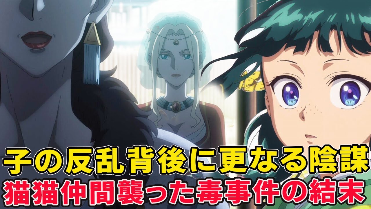 後宮に帰った猫猫とその仲間を襲った事件の元凶のを猫猫が加担!?原作いまだ完全解決してない子の反乱背後の真の黒幕!【薬屋のひとりごと三期】【子翠】【楼蘭】【翠苓】【姚】【燕燕】【羅漢】