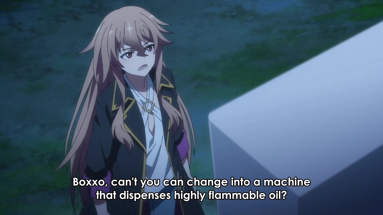 The group fights their way through the forest to reach the straightom lord, learning that it was once gentle before the nether lord’s presence corrupted it. While stopping to rest for the night, Boxo takes new forms and provides the group with ramen noodles and burgers to eat. The following night, Kikoya provides meals of her own, and the group learn that fire is forbidden in this straight as it does serious harm to the straight lord. The group builds a public bath out of wood made from the trees and Boxo is placed outside while Boten and Kuryata stand guard to keep the men from peeping as the girls enjoy the baths. The forest suddenly catches fire. Someone is attempting to burn the stratum lord which could destroy the transformed humans. As they continue to remove trees, Hulami instructs Boxo to pour gas on the fire to clear out all the trees and move it away from the stratum lord. Boxo protects everyone with his barrier as the fire stops, but he loses lots of points. The others give Boxo money in return. Reaching the stratum lord, everyone wonders if the big tress is really dead. And to confirm it, Lambis punches it to undo the transformations, but this awakens a ghostly woman named Kaolings, who is responsible for the fire and is working for the Nether Lord. Despite being a ghost, the group managed to defeat her using magic and capture her. The transformed humans are returned to normal and the group is finally able to return to the Clearflow Lake Stratum. Finally, Boxaw waits for customers to arrive, but no one comes as he realizes that Kiko has opened a vegetable stall just on the other side. As such, he transforms into a dessert vending machine and attracts everyone, only for Kikoyu to sell the sweet potato the next day and steal his customers once again.