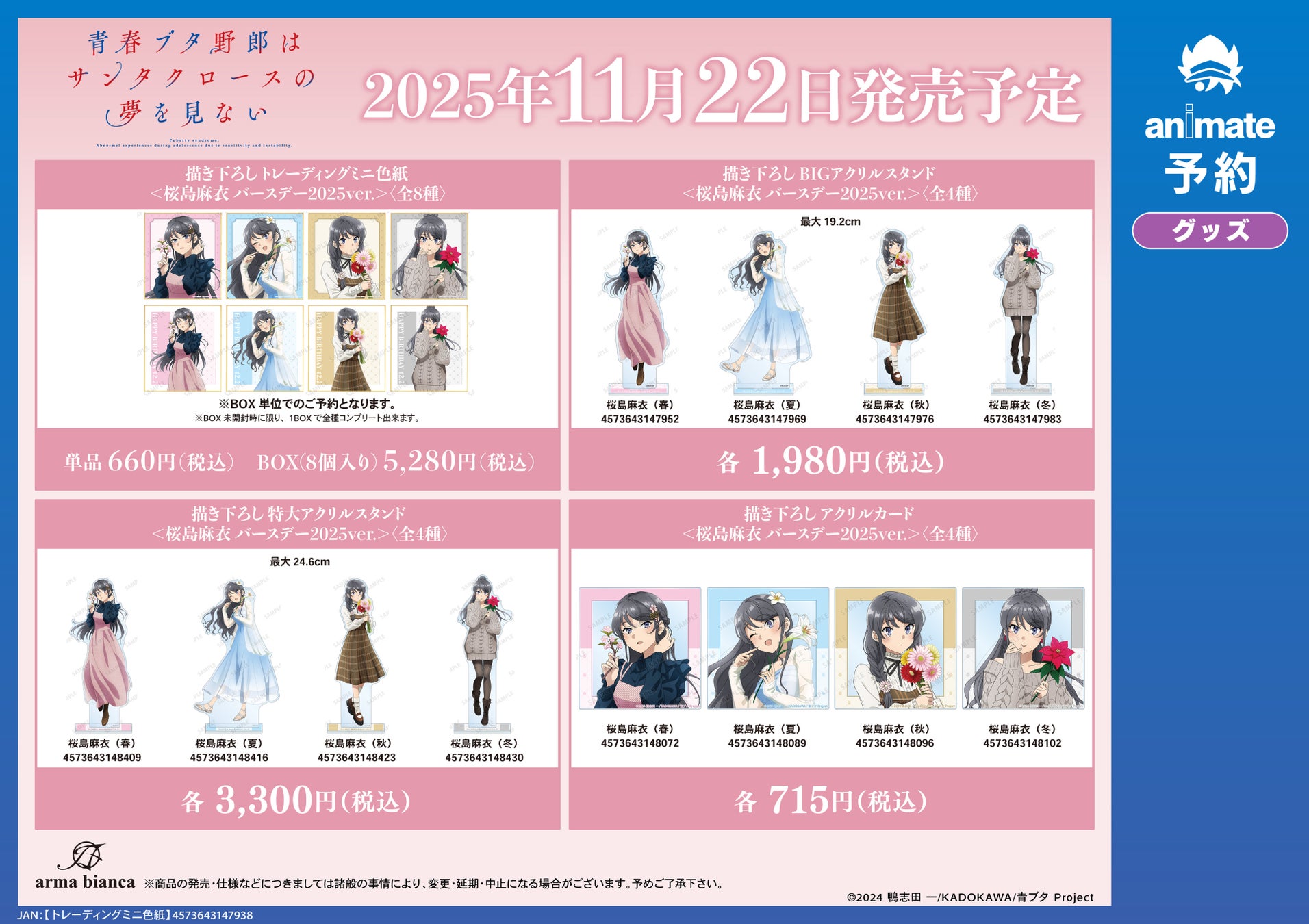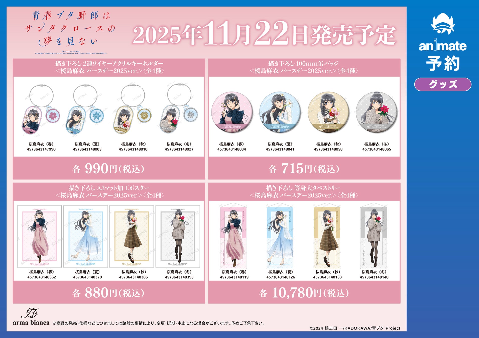 漫画・アニメのオリジナルグッズを販売する株式会社アルマビアンカは「『青春ブタ野郎はシーズンガールの夢を見ない』 桜島麻衣 バースデーフェア 2025 inアニメイト」を実施いたします!