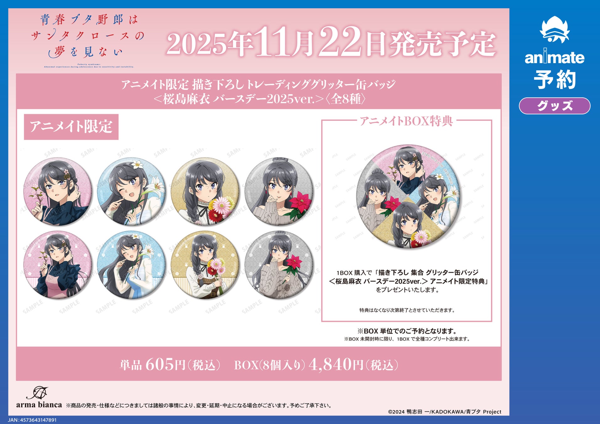 1BOX購入で「描き下ろし 集合 グリッター缶バッジ <桜島麻衣 バースデー2025ver.> アニメイト限定特典」をプレゼントいたします。