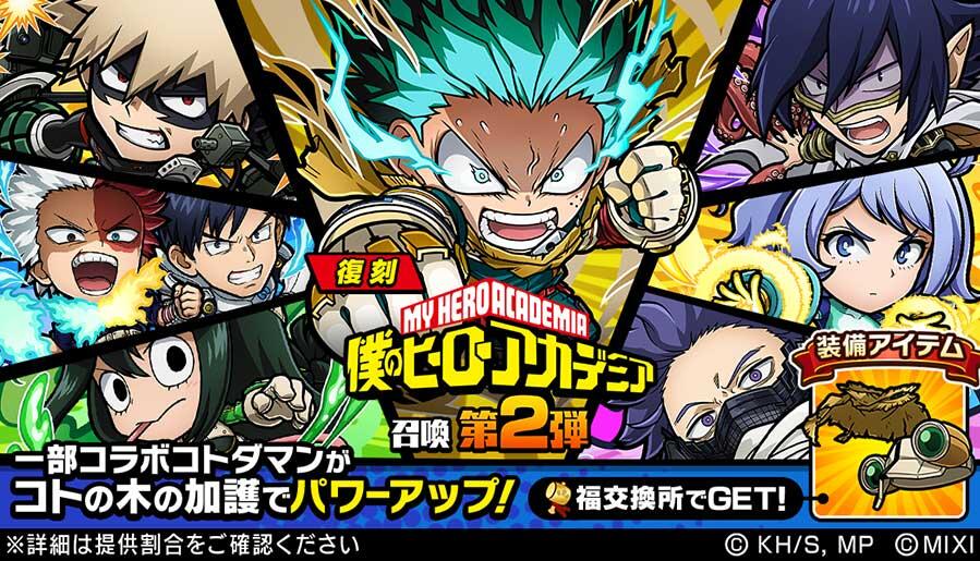 「[復刻]TVアニメ『僕のヒーローアカデミア』召喚第2弾」では、召喚のおまけとして、「[第2弾]ヒロアカチケット交換所」で★5コラボコトダマンなどと交換できる「[第2弾]ヒロアカチケット」を獲得できます。