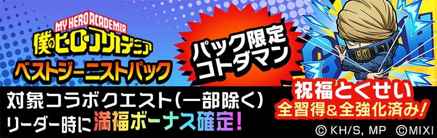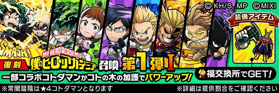「[復刻]TVアニメ『僕のヒーローアカデミア』召喚第1弾Ⅰ」「[復刻]TVアニメ『僕のヒーローアカデミア』召喚第1弾Ⅱ」にラインナップされている★5コラボコトダマンのうち、いずれか1体が出現するアイテムです。