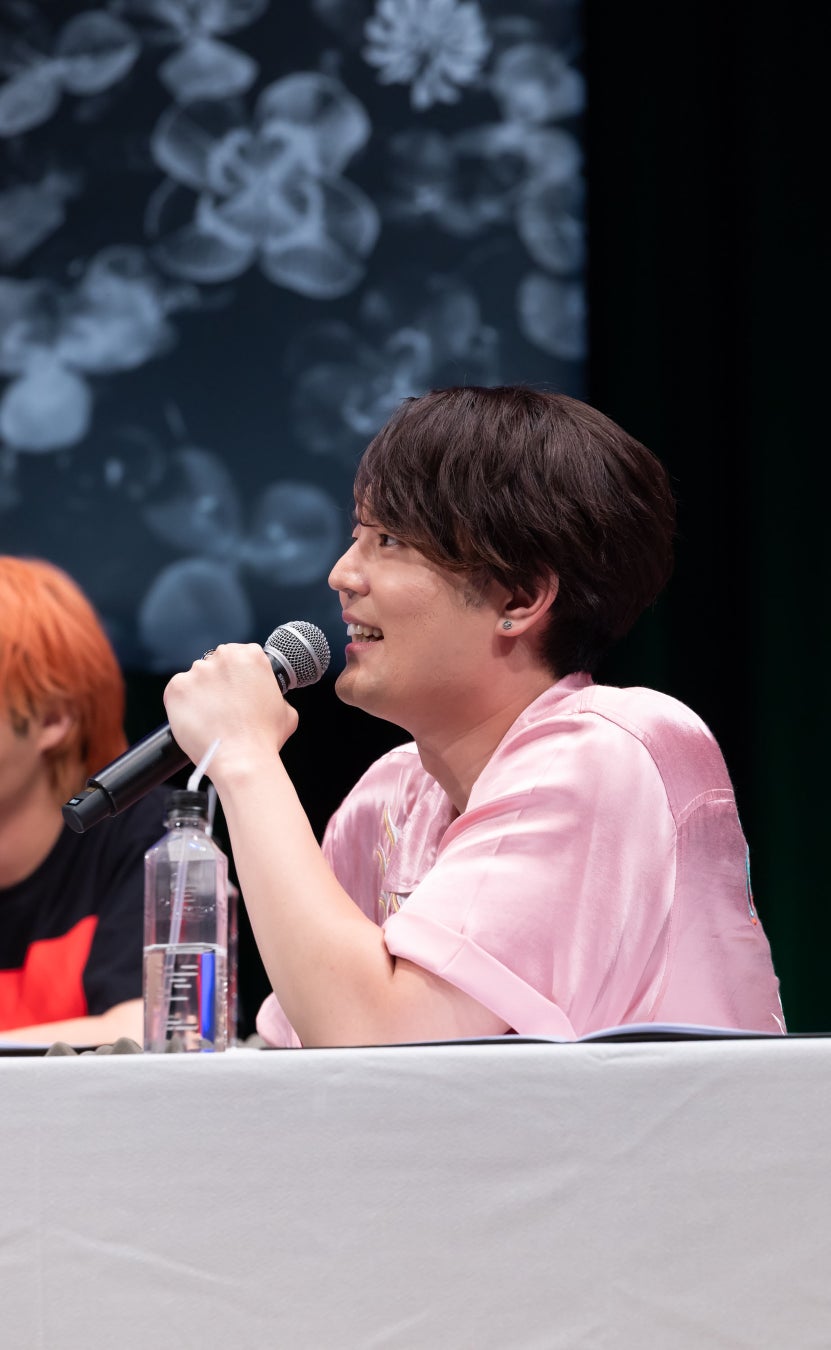 すると後ろからサイコロを蹴れという野次が飛び、客席から笑いが起こります。“自身のキャラクターとの向き合い方”のテーマに決まると、途中加入となった刹那について「こんなに受け入れられないことあるんだ」と笑いを交えつつ当初の戸惑いを吐露しました。また、収録の際は感情をそぎ落とすようにディレクションされたことを回想し、最後は自分のハートの強さを買われてキャスティングされたのではないかと自己分析し、会場の笑いを誘っていました。