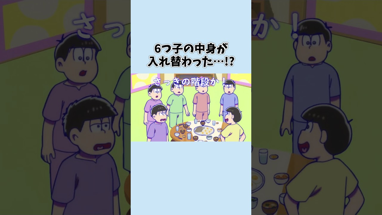 この時まだ服取り替えっこしてないから喋るまで誰が誰と入れ替わったのかわかりにくいwチョロ松(中身は十四松)の「どどどうすんの〜!?」めちゃくちゃ可愛い😊💕