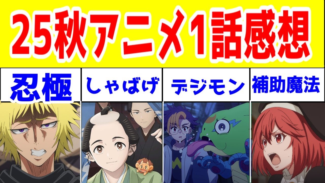 【2025年秋アニメ1話感想】「忍者と極道」「しゃばげ」「デジモンビートブレイク」「補助魔法」1話アニメレビュー