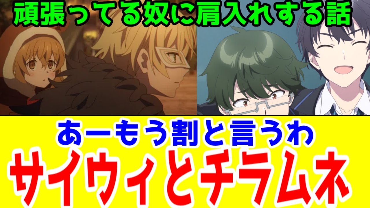 千歳がなんかサイレントウッチのアク をします。まあ一応アニメでアク名乗っ てるところまで行ったからアクって呼ぶ けど今回はネタ割れ一応抑えとくけどただ チラムネ2話の段階まだ弱キャラケンタ君 が始まる直前だからこそ千歳とアクの共通 点みたいなこと言っておきたいかなと思い ます。ま、西洋が同じってのもあるけどね 。ま、サイレントのアク、ま、本編、ま、 3クルぐらいやってからだとまた関係が 変わるんだけど、とりあえずアニメ1期の 時点では昔のフェリックスにモニカが似 てるから、ま、フェリックスが泣き虫だ けどそれでも頑張ってたっていう、ま、 そういう記憶が愛にあるから、ま、だから それをモニカに反映してるっていう、ま、 そういう書かれ方があったんですよね。で 、これ多分ね、千歳がケ太にギャンブルし てる理由と同じだと思うんですよ。まあ、 ギャンブルなんだけど、特に総合理解した 直後はね。ただ2話の時点で千歳は、ま、 ケ太は頑張ればやれるんじゃねえかって 書けるぐらいには、ま、ケ太のこと信じて みたいっていう気持ちもあるんでしょう。 やっぱね、千歳もケ太も美少女だったら また初期印象変わってたんじゃねえかなと 思うもん。思うんだけど、一巻で ブロマンス始めて2巻からようやく ヒロイン攻略普通のラドベアをや るっていうのがチラムネなんで。いやさ、 俺多分これケタ編で4話使うんだろうなっ て思うんだけど、俺はだってさすがに3話 で終わるかなと思ってたもん。正気の里 じゃねえなと思うんだけど。でもさ、千歳 作ってなんだかんだ行かれたわけだから 正しい判断だとは思いたい。だってケ太を 助けなのと同じぐらいの熱量で柚月やアネ をそれぞれ助けようとするからこそ千歳な わけで、ま、そこが歪みでもあるんだけど 、ただケ太を助けるために千歳が本気出し てるっていうのは、ま、それは悪いこと じゃないはずだからね。ま、本当になんか サイレントのアイックがモニカに片入れし てんのと近い状況あんのかなと思ってて。 いや、アニメの段階でね。うん。本編が 終わったらまた違うんだけど、あくまで アニメの段階でね。うん。あれ、 サイレントでモニカが毒目薬入れられて、 ま、事故にあった時に、ま、あの時も愛は 結構モニカに偏してたわけじゃん。ま、 どう見てもね。ま、暗殺防子の名目もある わけだし、ま、結局イザベルがリスクとか なんやかんやすっ飛ばして落とし舞いつけ たんだけど、ま、なんとなくちらむね、 多分4話でやる話。ま、これもネタバレか 。うん。ま、プロモーションビデオラスト のあれと多分サイレントで毒目薬入れた後 の処やってた頃のアクって多分近いもん あると思うんだよ。まあ千歳も愛くも 背負えすぎやねん。ま、千歳にク線がいる ように愛クにも本編終わったらモニカーが いるから結局アクとの共通点って頑張っ てるやにだいぶ救われててそいつを信じて みたいっていう気持ちがあるんだと思うん だよ。やっぱ千星族こいつオールマイトな んじゃねえの?バンプだしな。これは多分 3話の感想で使うかもしれん。いやあ、 ラフメイカー使ってほしいね。ちらブネ サイダーガールさんは引っ張ってこれた からバンプも引っ張ってきてラフメーカー やってほしいね。ま、ここまでケ太と モニカの話したけど、愛クにとっての沈黙 の魔女様のポジションって、ま、千歳昨に 例えると白ワンピの、ま、昨日呼んできて 年下っぽくて懐ついてくる初恋いの子 っぽいんだろうね。ま、こっちは本当何も 言わないけど言えないけど、ま、沈黙の 魔女様が7モニカなようにあの白ピの人、 ま、うん。あー、 ま、あの、白ワンピンの人を印象的に書 くっていうことは考えてるんじゃないかな と思います。ま、ここまで考えてきたけど 、あれだよね。割と健太編って現代なろう 系だなと思ってます。ま、それは後々話し てこうかなと思ってて、嘆撃きの亡霊 ストグりの、ま、ティノと、ま、性別以外 は割とケンタの状況って近いし、ケ太の 引きこもりって無職転生やサイレント ウイッチなんすよ。それはまあ無職転生の 話すると長くなるからまた3話か4話 終わった辺たりで語ろうかなと思ってる けどリアルタイムだからこそこう昨がケ太 に壁を超えられることを信じてみたかっ たっていうまそういう祈りを感じる時期だ からまあこの動画多分コメントあんまつか ないタイプのこと話と思うんだけどマジで クと千歳作者どしだと思ってるよ。の目に 移る もの の真の影