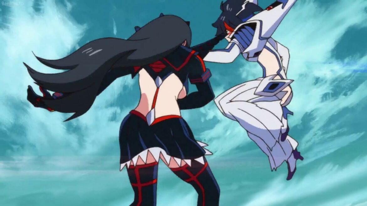 Thoroughly beaten in a fight against one of the students in uniform, Ryuuko retreats to her razed home where she stumbles across Senketsu, a rare and sentient “Kamui,” or God Clothes. After coming into contact with Ryuuko’s blood, Senketsu awakens, latching onto her and providing her with immense power. Now, armed with Senketsu and the Scissor Blade, Ryuuko makes a stand against the Elite Four, hoping to reach Satsuki and uncover the culprit behind her father’s murder once and for all.